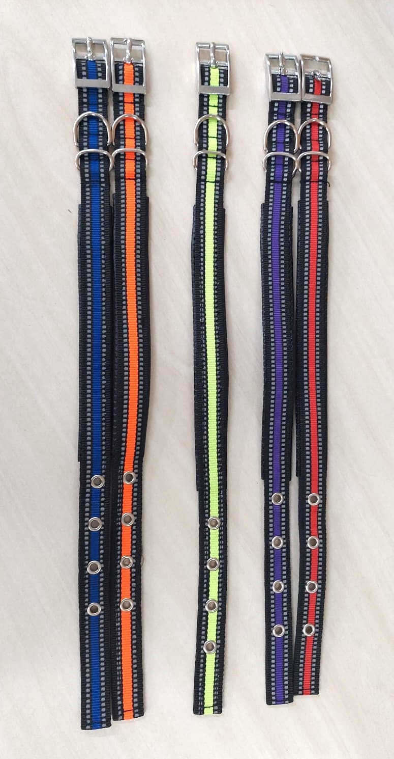Coleira Refletiva. Brilha à noite, facilitando assim o reconhecimento de seu pet. Além de trazer elegância, traz também conforto e segurança durante o passeio.
